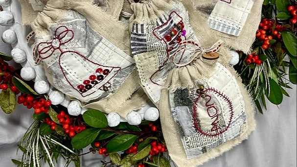 Slow Stitch by hand a delightful set of 24 Advent treat bags to display and fill with goodies in the lead up to Christmas. An Advent calendar with a difference to place in a bowl, basket, or hang.