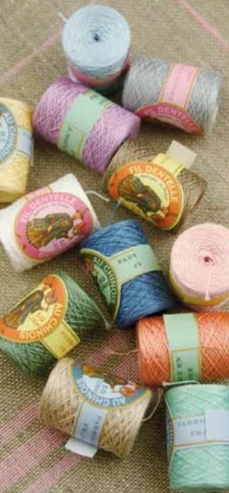 This thread is made of 3 strands of twisted mercerised cotton (the equivalent of DMC n° 80). The presentation in small cocoons each weighing 5 grammes (approx. 110 metres) makes it simple to use: the thread is pulled from the centre, so it doesn't knot. Each cocoon is labelled. Originally designed for bobbin lace making, these fine threads can be used for cross stitch, hand stitching and embroidery.