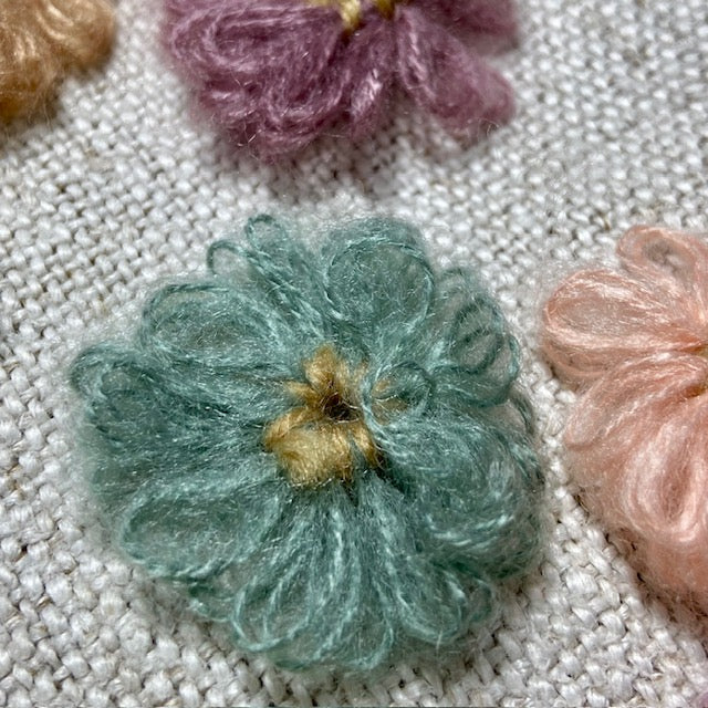 There are 12 pieces in this pack of these sweet woolen crochet flowers.