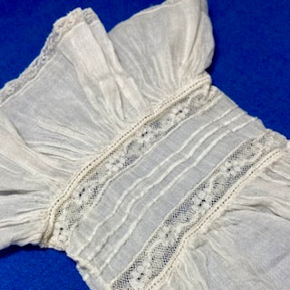 The heirloom sewing techniques of pin ticks and insertion lace around the cuff are done by hand. Absolutely amazing!