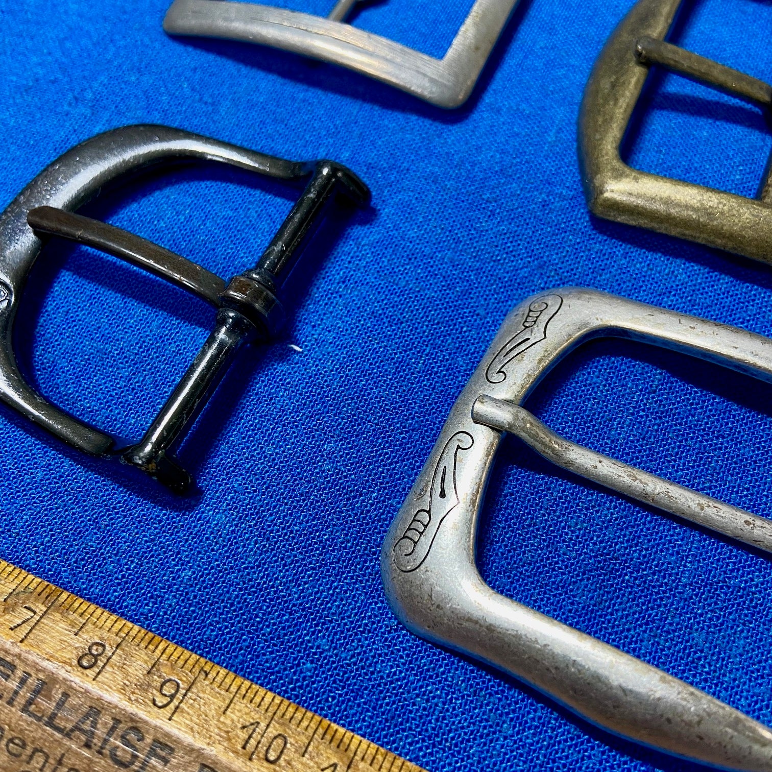 We found these metal belt buckles during our last visit to Texas. Interestingly, the black one has an Australian stamp mark on it…