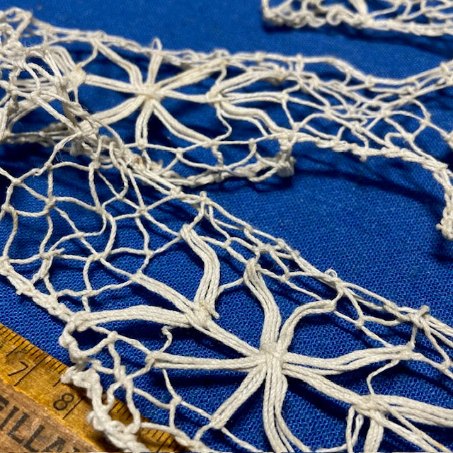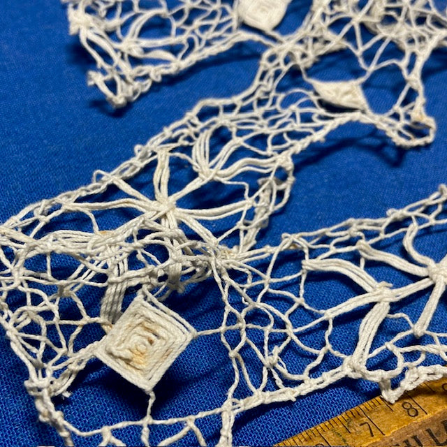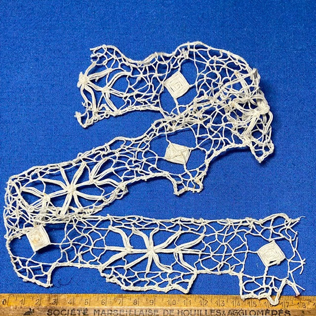 Handmade French needle lace, made with an ecru, linen thread.