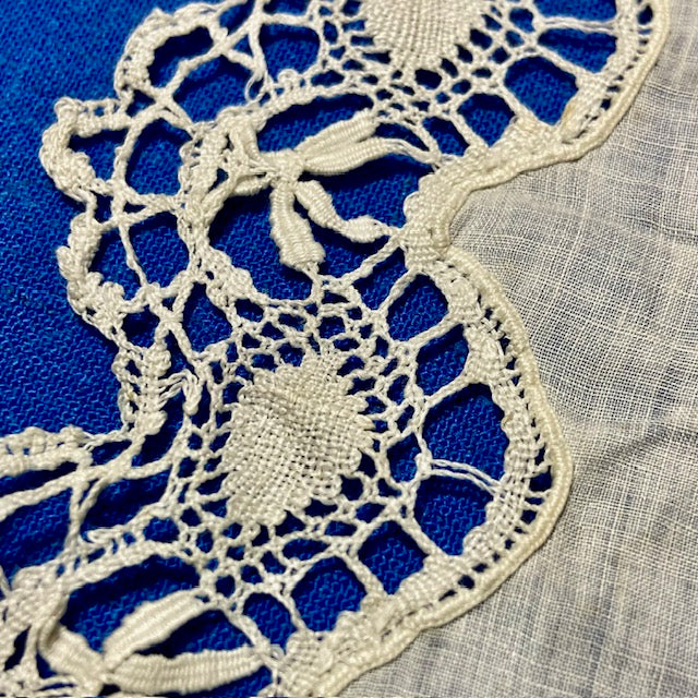 both the lace and monogram have been hand stitched.