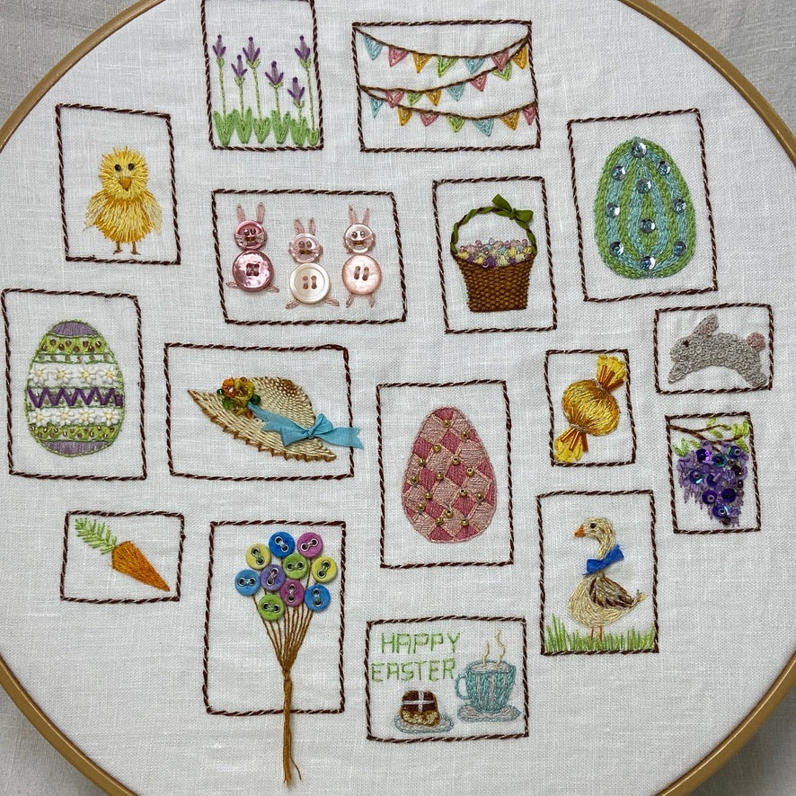 This is a brand new design from our Postage Stamp Embroideries series. There are 16 easter motifs in your pattern which includes a piece of linen printed with the postage-stamp sized boxes ready for you to add the designs.