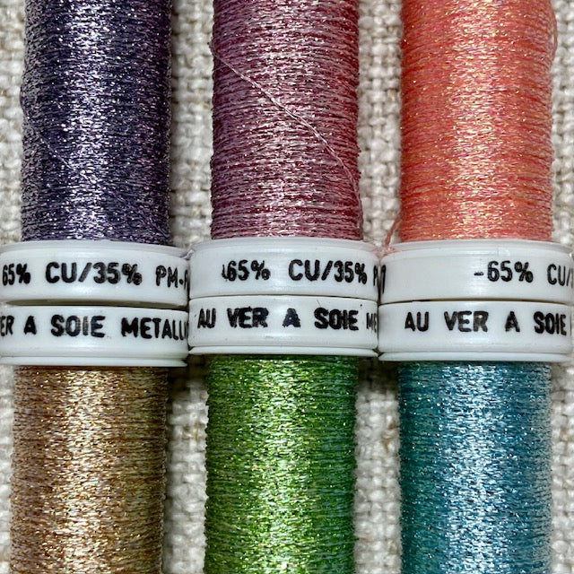 Available for separate purchase is the Au ver a Soie metallic thread set "Spring". These metallics have been used throughout the design.