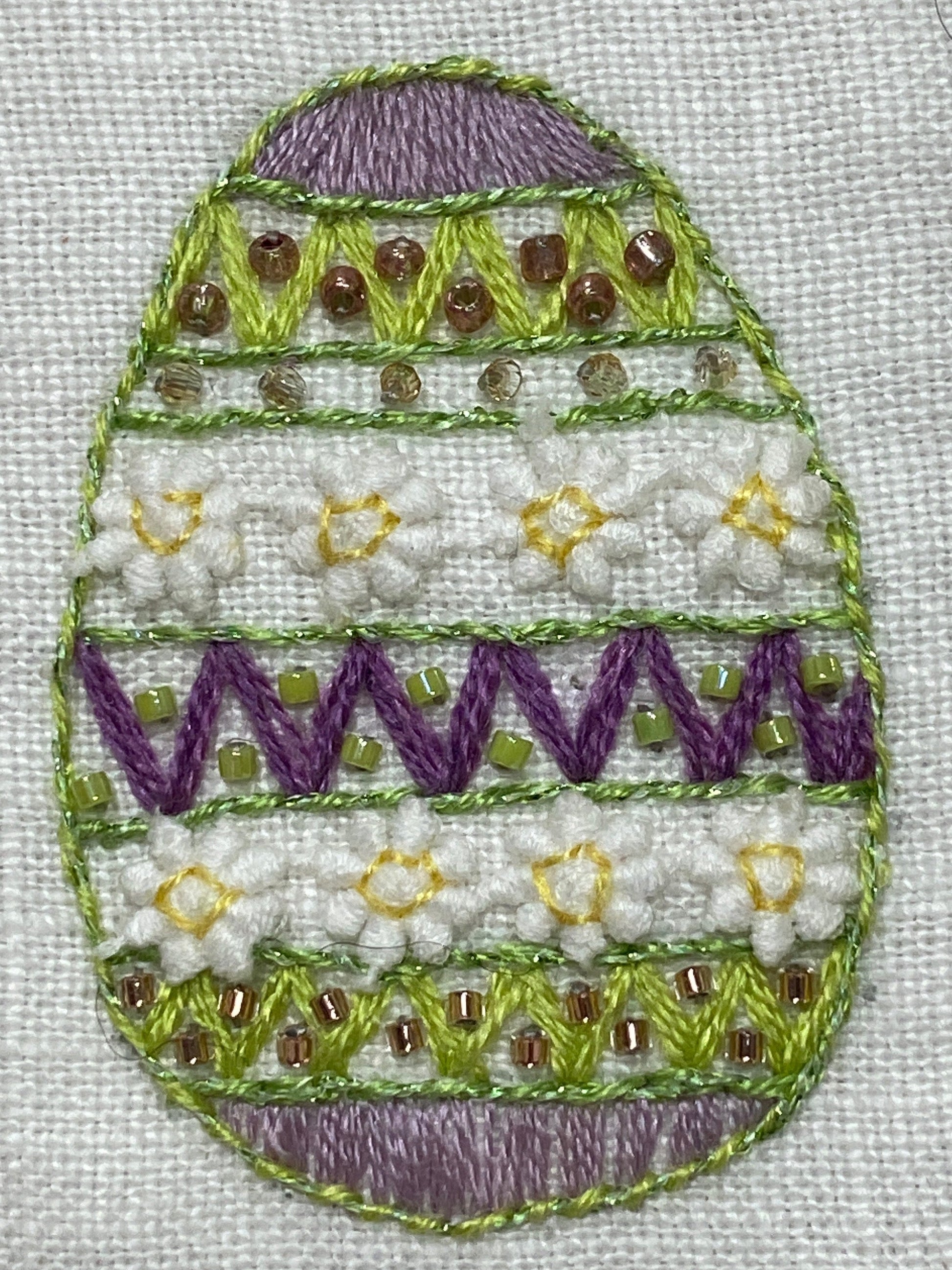 Very simple stitches are used in this project: Satin stitch, long and short stitch, french knots, chain stitch, lazy daisies, backstitch and fly stitch, so it's suitable for beginners to advanced.